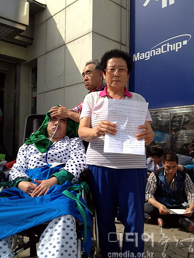 하지만 어머니는 포기하지 않았습니다. 매그나칩반도체 앞에서 1인시위를 시작하고 지역의 단체들을 찾아갔습니다. 소식을 들은 종교인들이 지난 7월 2일 매그나칩의 진실 고백을 촉구하는 기자회견을 열었습니다. 어머니가 포기 하지 않은 끝에 지역단체들도 어머니의 손을 잡았습니다. 지역단체들이 매그나칩 정문 앞에서 매일 오후 2시부터 3시까지 피켓시위에 함께 했습니다.