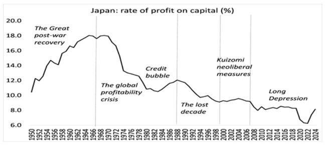 1990년대 이후 일본 경제의 침체를 끝내기 위해 기업 투자를 확대하려 했던 신자유주의적 조치들이 실패한 핵심 요인은 자본투자의 수익성이 하락했기 때문이다일본의 자본 수익성은 다른 어떤 주요 7개국(G7) 경제보다도 더 크게 하락했다.