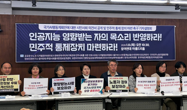 시민사회단체들은 이날 설명회를 통해 AI 정책이 더 이상 산업 경쟁력 중심으로만 추진돼서는 안 된다고 강조했다. 이들은 “국가 인공지능 행동계획을 전면 재검토하고, AI의 영향을 받는 사람들의 권리와 안전을 정책의 출발점에 두는 민주적 거버넌스를 구축해야 한다”고 촉구했다.