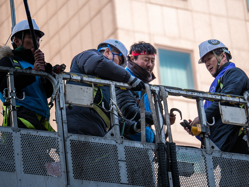 고공농성을 마치고 기자회견장으로 이동하는 고진수 지부장. 참세상 박도형 기자