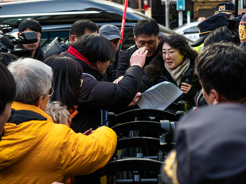 경찰병력과 연대시민 사이에 실랑이가 벌어지고 있다. 참세상 박도형 기자