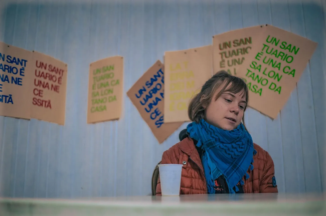 툰베리는 이렇게 말했다. “내가 활동가로 살아온 모든 세월 동안, 나는 매일 같이 제도와 이른바 지도자들, 기업, 선출직 공직자들, 은행들, 무엇이 되었든 그들이 우리를 구해줄 것이라는 희망을 점점 더 잃어왔다. 애초에 그런 희망이 있었는지도 모르겠다. 바로 그들이 우리를 이 상황으로 몰아넣은 주체다. 이 체제는 결함이 있는 것이 아니다. 이 체제는 파괴적으로 작동하도록 설계됐다. 이 체제는 불평등한 권력 구조를 유지하도록 설계됐다. 이 체제는 일부 사람들을 억압하도록 설계됐다. 이 체제는 자연을 우리와 분리된, 외부의 대상으로 만들어 착취하도록 설계됐다. 사람들을 억압하려면 먼저 그들을 비인간화해야 한다. 출구는 오직 권력을 되찾는 데 있다. 이것이 바로 내가 이탈리아에서 파업 중인 노동자들을 지지하기 위해 여기에 온 주된 이유다. 이것은 사람들이 권력을 되찾고 진짜 권력이 어디에 있는지를 보여줄 때 어떤 모습이 나타나는지를 보여주는, 교과서적인 사례다.”