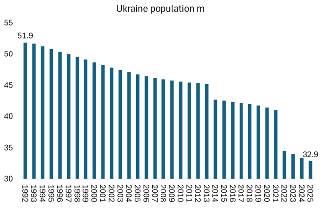 진실이 무엇이든, 이 전쟁은 우크라이나에 인도주의적 재앙이 되었다. 특히 이번 겨울에는 주요 도시들의 에너지 및 난방 전력 체계가 러시아의 미사일 공격으로 대부분 파괴되면서 상황이 더욱 심각해졌다. 4년간의 전쟁 동안 수백만 명이 해외로 피신했고, 그보다 더 많은 수백만 명이 국내에서 삶의 터전을 떠나야 했다. 우크라이나의 인구는 소련 붕괴 이후 37% 감소했고, 전쟁이 시작된 이후에만 20% 줄어들었다. 실질 국내총생산은 1991년 이후 37% 감소했으며, 전쟁 발발 이후에도 21% 감소했다.