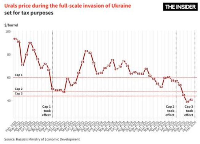 <우크라이나 전면 침공 기간 중 세금 산정을 위한 우랄산 원유 가격> 출처: 러시아 경제개발부