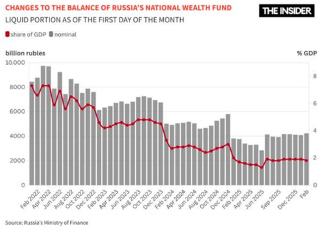 그러나 러시아는 여전히 상당한 외환 보유액을 갖고 있으며, GDP 대비 공공부채 비율도 낮은 수준이다. 수출 수입이 감소하더라도, 대부분 국유인 은행 시스템은 막대한 현금을 보유하고 있어 이를 활용할 수 있다. 또한 2024년 말 그랬던 것처럼 은행들에 국채를 매입하도록 지시할 수도 있다. 다른 수단이 모두 여의치 않을 경우 중앙은행이 국채를 매입해 부채를 화폐화할 수 있다. 다만 이는 루블화의 급격한 가치 하락을 초래하고, 그에 따라 물가 상승을 더욱 부추길 것이다.