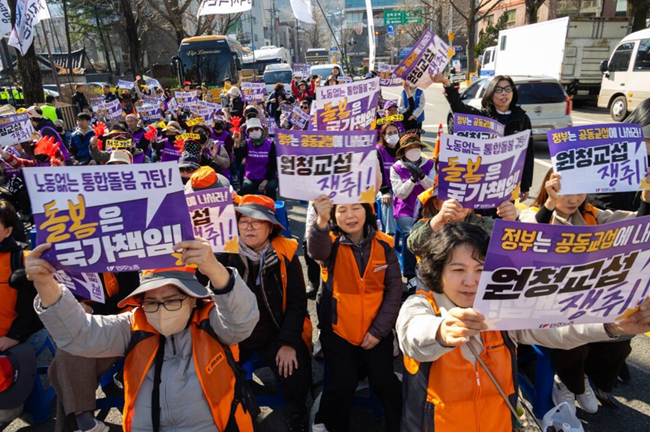 노인장기요양보험제도 공공성 강화를 위한 공동대책위원회(요양공대위)는 25일 청와대 분수대 앞에서 기자회견을 열고 “공공 인프라 확충과 돌봄노동자 권리 보장 없이 통합돌봄은 제대로 작동할 수 없다”고 밝혔다.