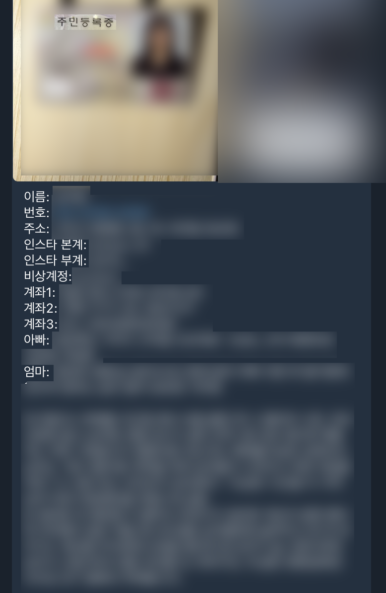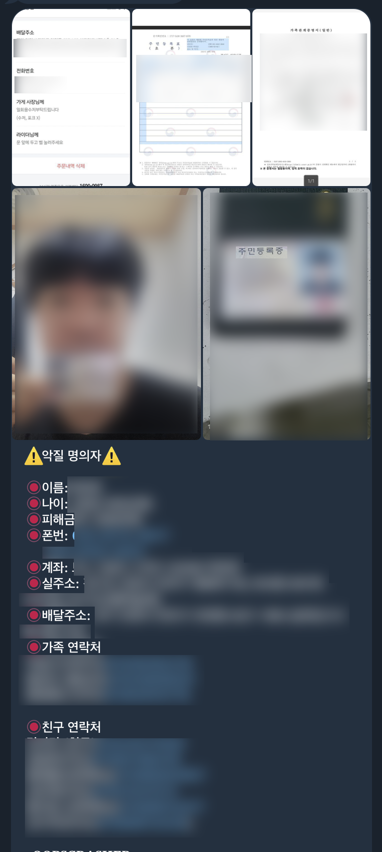 주민등록증과 주민등록등본, 가족과 지인의 연락처 등의 개인정보가 ‘박제’된 대포통장 명의자들.