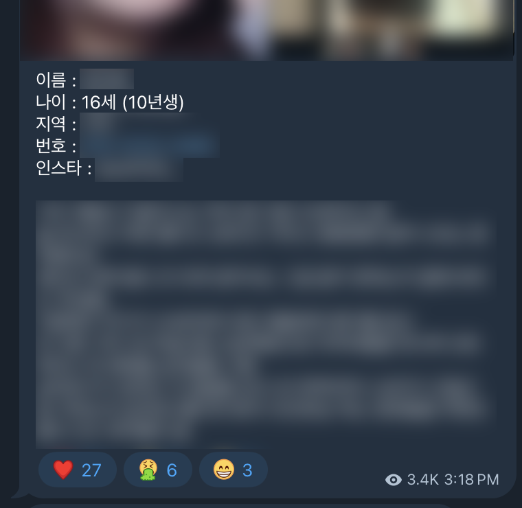 기자가 잠입한 ‘암행어사’의 박제방은 주로 10대부터 20대까지의 여성 피해자들을 노렸다. 피해 여성들의 상세한 신상정보와 함께 차마 입에 담기 어려운 수준의 성적 모욕과 조롱을 반복했는데, 기자가 확인한 피해 여성들만 수백 명에 달했다. 신상정보는 얼굴 사진, 이름, 휴대전화 번호, 집 주소, SNS 계정, 학교, 가족의 이름과 연락처까지 상세하게 공개됐다. 피해자들은 3명 중 1명꼴로 10대 중반에서 후반에 이르는 청소년이었다.
