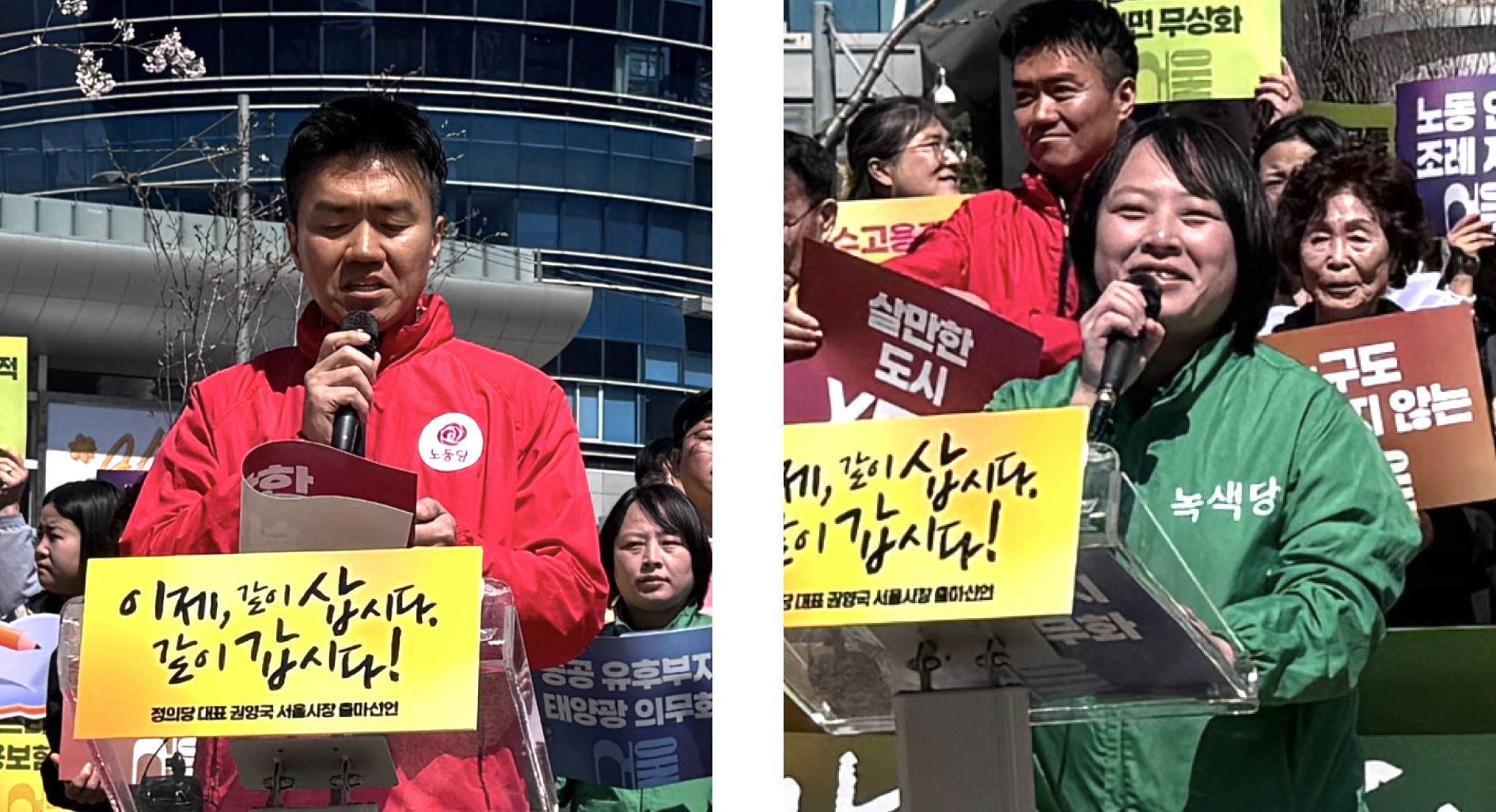 이백윤 노동당 공동대표(왼쪽), 이상현 녹색당 공동대표(오른쪽). 참세상 류민