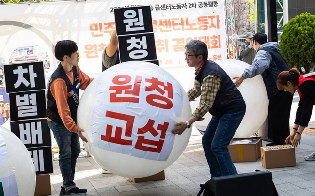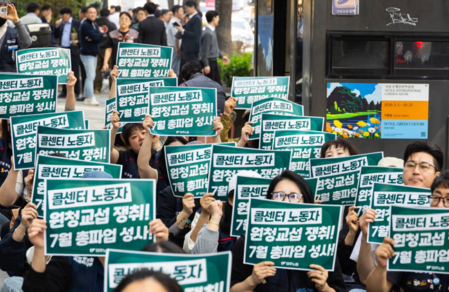 같은 날 민주노총은 서울지방고용노동청 앞에서 콜센터 노동자 결의대회를 열고 원청교섭을 촉구했다. 민주노총은 22개 사업장에서 10개 원청을 상대로 교섭 절차를 진행 중이라며 “사용자성 인정은 시작일 뿐이며, 원청이 교섭에 나서야 한다”고 밝혔다.