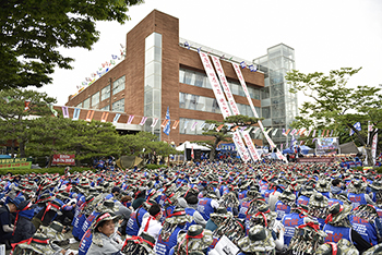 현대중공업 물적 분할을 위한 임시주주총회가 하루를 앞둔 가운데, 6500명에 달하는 전국 노동자들이 주총 장소인 한마음회관 앞에서 집회를 열었다...