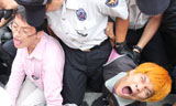 경찰이 집회 참석을 위해 이동하던 중증장애인들을 무리하게 막아서 곳곳에서 항의가 이어지고 있다. 장애등급제·부양의무제 폐지 공동행동은 21일 늦...