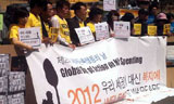 30여개 평화, 환경, 인권, 여성단체들은 군비축소와 제주 해군기지 건설 중단을 촉구하는 평화행동에 나섰다.