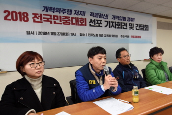 2018 전국민중대회가 12월 1일 국회 앞에서 개최된다. 전국의 노동자, 농민, 빈민들이 국회 앞에 모여 정부와 국회를 압박하는 투쟁에 나선다...