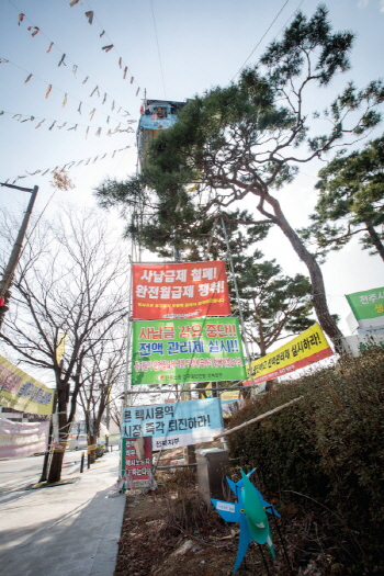 전주 택시 10개 사업장이 전액관리제에 따른 월급제를 지난 1일부터 시작했다. 424일째 이어지고 있는 김재주의 전주시청 앞 고공농성으로 완전월...