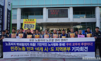 민주노총 16개 지역본부가 ‘삼성 봐주기’ 의혹을 받는 권혁태 대구고용노동청장 사퇴를 요구하며 청장실 점거 농성 중인 민주노총 대구본부를 지지하...