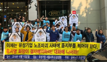 유성기업 노동자들이 유시영 회장과의 직접교섭을 요구하며 유성기업 서울사무소 점거 농성에 나섰다. 유성기업이 권한 없는 교섭 대표를 앞세워 지난 ...