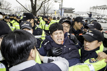 경찰 약 200명, 종로구청 직원 15명이 6일 오후 2시경 비정규직 노동자들을 제압하고 농성장을 철거했다. 기아자동차비정규직지회 김수억 지회장...