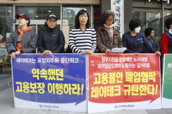 이들에 따르면, 레이테크 임 모 대표이사는 지난 3월 14일, 21일 여성 조합원 3명을 폭행했다. 임 대표이사는 회사 안에서 조합원 이 모 씨...