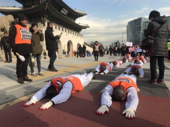 전교조 해직교사들이 법외노조 철회와 해고자 복직을 요구하며 삭발을 하고 오체투지에 나섰다. 전국교직원노동조합(전교조)은 1일 오후 광화문 북광장...
