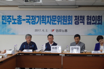 민주노총 최종진 위원장 직무대행은 정책협의회에서 “새 정부와 민주노총이 노동 적폐 청산과 사회 대개혁을 위해 많은 의견을 나누는 소통의 자리가 ...