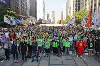 문재인 정부 출범 후 첫 대규모 도심 집회가 열렸다. 최저임금 1만 원 즉각 실현을 위한 집회에 노동자와 시민 약 5천 명이 참여했다.