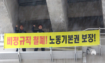 11일 새벽, 울산 동구 남목고개 15m 고가다리 위에 오른 두 노동자는 “고공농성 기간 동안 블랙리스트를 뿌리 뽑기 위해 모든 방법을 동원할 ...