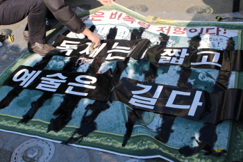 문화예술단체가 표현의 자유 침해를 문제로 <더러운 잠>을 훼손한 새누리당 외곽조직과 보수단체 회원들에 법적인 책임을 요구했다. 더불어...