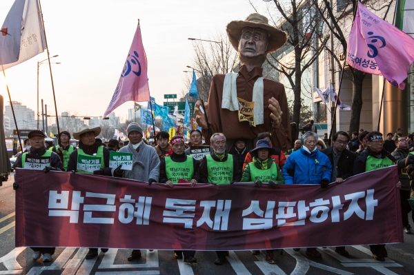 전국 농민 5천 명(주최 측 추산)이 22일 오후 2시 서울 대학로에서 ‘쌀값 대폭락 박근혜 정권 퇴진 전국농민대회’를 열었다. 전국농민회총연맹...