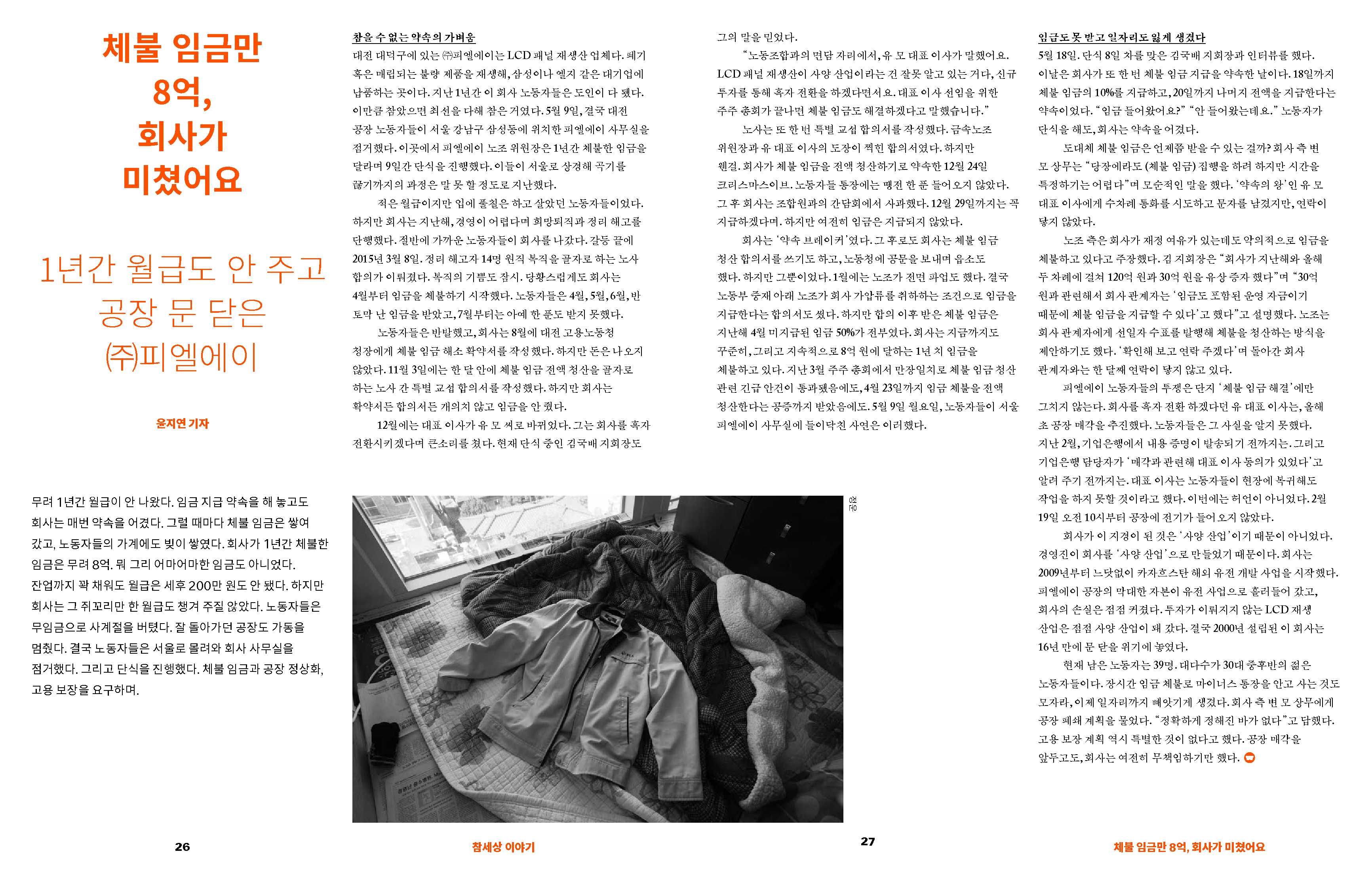 무려 1년간 월급이 안 나왔다. 임금 지급 약속을 해 놓고도 회사는 매번 약속을 어겼다. 그럴 때마다 체불 임금은 쌓여 갔고, 노동자들의 가계에...
