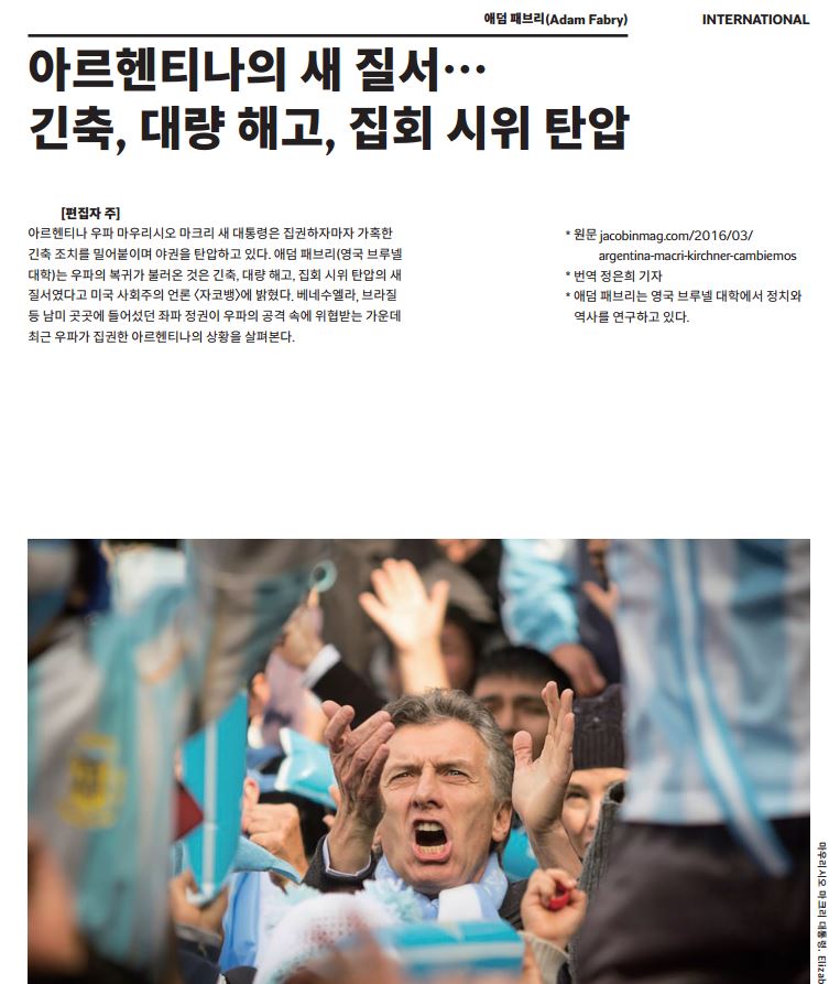 베네수엘라, 브라질 등 남미 곳곳에 들어섰던 좌파 정권이 우파의 공격 속에 위협받는 가운데 이미 우파가 집권한 아르헨티나의 상황을 살펴본다.