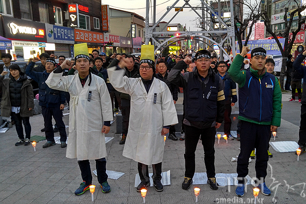 유성기업 한광호 열사 투쟁대책위는 22일 오후 6시 30분 영동군 시내 삼일공원에서 촛불문화제를 열고 “열사의 죽음에 대한 책임은 명백하게 노조...