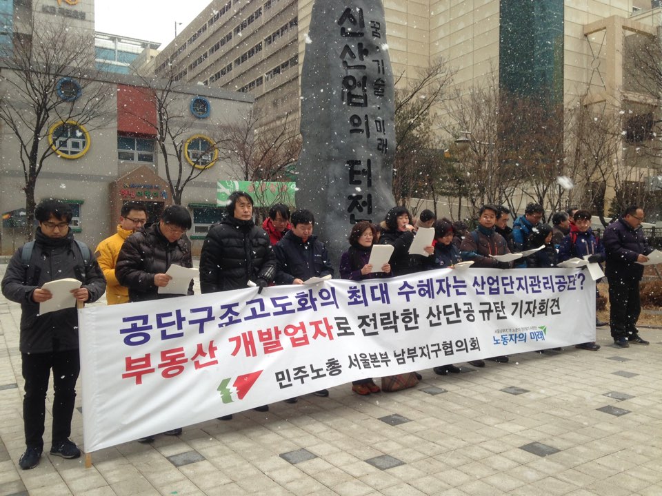 전국건설노동조합은 전국 각지에서 '건설근로자의고용개선등에관한 법률(약칭 건고법)' 개정안의 국회 통과를 위한 기자회견을 열었다.