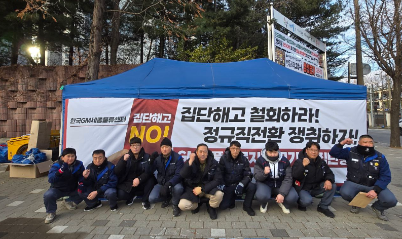 한국GM 세종부품물류센터 하청노동자들이 노조 결성을 이유로 한 집단해고에 반발해 한국GM 본사 앞에서 농성에 돌입했다. 노동자들과 노동·시민사회단체는 한국GM의 보복성 해고와 원청 책임 회피를 규탄하며 부당해고 구제와 원청 교섭을 촉구하고 있다.