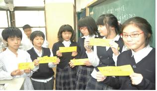 ▲ 스쿨&북콘서트에 참여한 학생들이 지역서점에서 책을 직접 고른 뒤, 책을 흔들어 보이고 있다. |