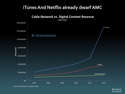 넷플릭스(Netflix)는 20세기 말, 미국의 비디오 대여업체로 사업을 시작했다. 비디오테이프와 DVD를 빌려주던 넷플릭스는 주문형 비디오(VOD) 시장의 가능성을 알아채고 2010년부터 스트리밍 서비스를 시작했는데, 불과 4년 만에 영상 콘텐츠 공급 분야에서 절대 강자 자리에 올랐다. 최근에는 자신들의 유통 장악력을 이용해 직접 영상 콘텐츠를 만드는 행보까지 보이고 있다. 재미있는 점은 그런 막강한 넷플릭스조차 애플 아이튠즈 스토어의 이익에는 한참 뒤쳐진다는 사실이다.