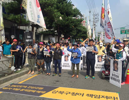 ▲ 고(故) 박단순씨 사건의 진상규명 및 책임자 처벌을 요구하는 결의대회에 참석한 노점단체 회원들과 시민단체 활동가들 |