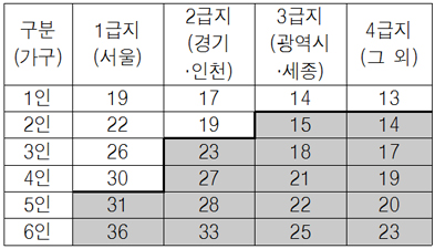 ▲ <표 2> 2015년 주거급여 기준임대료(단위: 만원) |