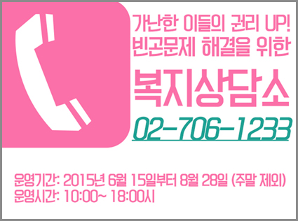 바로 <가난한 이들의 권리 UP! 빈곤문제 해결을 위한 복지상담소>이다. 전화 상담을 통해 권리구제와 제도개선을 위한 활동을 이어가고자 한다. 이처럼 다양한 곳에서 기초생활보장제도를 제대로 개정하기 위한 싸움과 활동들이 이어지고 있다.