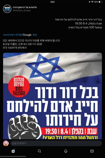 ▲ 필자의 타임라인에 떴던 이스라엘 민주주의 시위 광고 [출처: 필자 제공] |