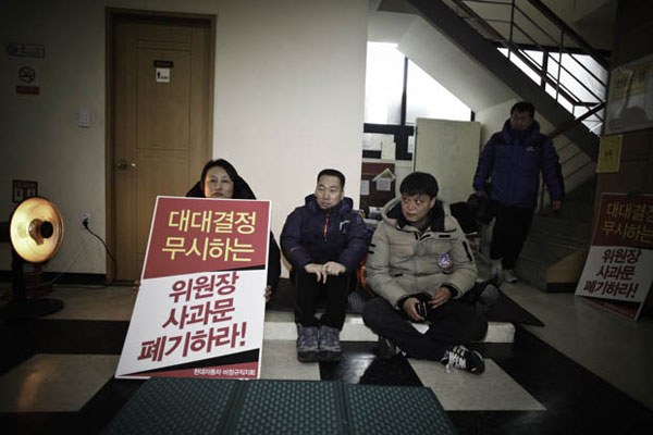 그런데 불확실한 미래 앞에서 약해지는 것이 인간이라고, 대법원 판결에 앞서 지난해 8월18일 현대차 비정규직 지회 중 전주와 아산지회가 사측과 신규채용을 조건으로 합의를 봤다. 울산지회는 이 교섭에서 빠졌다. 한 달 후에 있을 대법원 판결이 어떻게 날 지 아무도 장담을 못했기 때문에 사측이 그나마 신규채용을 내놨을 때 이것에 합의하고 따낼 것은 따내자는 심산이 컸으리라.