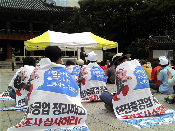 8월 27일 4차 희망버스는 서울이다. 대국민제안 기자회견을 하고 토론회도 했다. <정리해고의 어둠을 헤치고 달려라 희망버스> 그리고 한진 본사를 압박하는 퍼포먼스 <조남호의 막힌 귀를 뻥 뚫어라>는 많은 이에게 즐거움을 주기도 했다. 뚫어뻥을 이용한 퍼포먼스는 이후 기자회견에서 재활용되기도 했다. 서울로 와 달라는 희망버스의 외침 그리고 연대가 연대를 만든다는 기조에 맞게 전국의 투쟁사업장 노동자들은 공동투쟁단을 꾸리고 연대를 만들어 갔다.