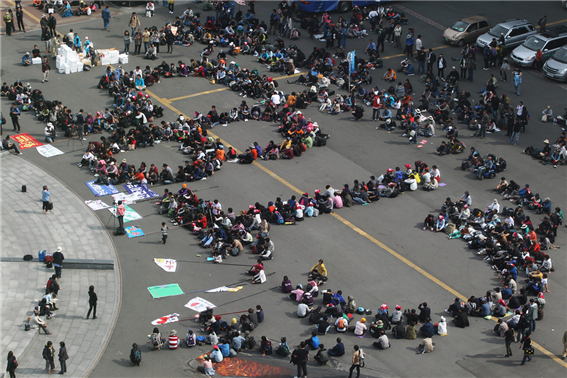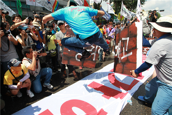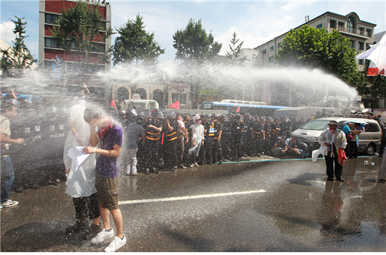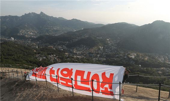 청계천에 모인 희망버스 탑승객들은 광화문 사거리에서 경찰의 차벽에 막혔고 우회도로인 서대문 쪽으로 이동해 독립문 공원에서 밤을 샜다. 여기에서 우린 또 신나게 놀았다. 다음 날 새벽 청와대가 보이는 인왕산 꼭대기에 올라 대형현수막을 걸고 정리해고 철회를 외쳤다. 독립문에서 아침을 맞은 희망버스는 용산구 갈월동에 있는 한진중공업 본사 앞으로 향했고 그곳에 모인 사람들은 경찰의 물대포에 맞서 싸웠다. 스티로폼으로 만든 정리해고의 벽을 박살 내는 퍼포먼스를 하고 경찰과 대치하다가 마무리 집회를 하고 돌아섰다.