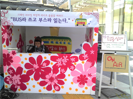 김진숙이 크레인에 오른 지 300일이 되는 날이 다가오고 5차 희망버스 다녀온 지 그리 긴 시간이 지나지 않았기에 300일 문화제는 부산과 서울로 나누어 진행하기로 했다. 11월 1일 300일이 되는 날 우린 <희망BUS라 쓰고 부스라 읽는다>는 이름의 라디오 부스를 한진중공업 본사 앞에 차렸다. 매일 오전 6시부터 밤 12시까지 릴레이로 진행하는 라디오 생방송이다. 누구나 게스트로 참여할 수 있고 누구나 자신의 소리를 낼 수 있었다. 그러던 중 11월 9일 한진중공업 사측과 노조의 타결 소식이 들려왔고 김진숙은 그렇게 크레인 85호 고공농성 309일 만에 땅으로 내려오게 되었다.