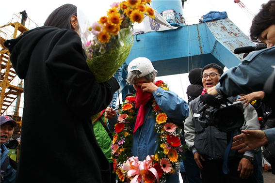 <소금꽃 공동투쟁단>이라는 이름으로 기자회견에서 투쟁사업장 노동자의 연대로 이제는 정부에 직접 요구함으로써 한진중공업 정리해고 문제를 포함해 투쟁사업장 사태 해결과 진전을 만들어 나가려고 한다는 투쟁 방향을 밝혔다. “우리는 개별적으로 쫓겨났고, 낱낱이 쫓겨났지만 이제 하나가 되어 나선다”, “하나의 고통, 하나의 운명, 하나의 절규, 하나의 결단으로 똘똘 뭉쳐 나설 것”이라고 선언했다.