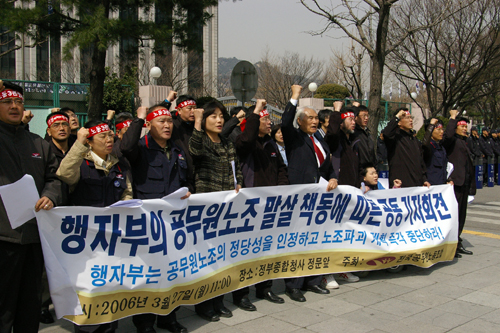 ▲ 전국공무원노조는 지난 27일 행자부의 ‘불법단체 합법노조 전환(자진탈퇴) 추진지침’을 규탄하는 기자회견을 열기도 했다. |
