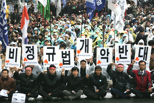 그러나 정부가 만들고 있는 시행령이 정부가 선전하고 있듯이 “비정규직을 보호하는 것”이 아니라 기간제 노동자를 확대하고, 파견대상 업무를 확대해 파견직 노동자를 확대하는 방향으로 만들어지고 있어 노동계가 강력히 반발하고 있다. 공공운수연맹은 시행령의 문제점을 알리기 위해 이를 홈페이지에 공개했다. 민주노총은 18일 긴급 기자회견을 갖기도 했다.