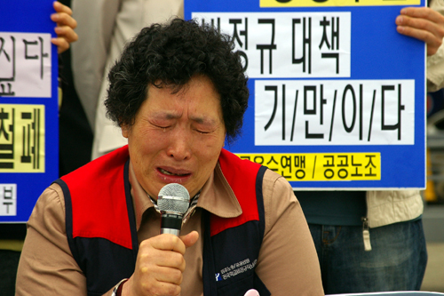 ▲ 정부의 공공부문 비정규직 대책은 그간 계약기간 없이 일해왔던 학교비정규직 노동자들에게는 해고로 다가오고 있기도 하다. 경기여고에서 일하던 천옥자 학교비정규직지부 조합원은 공공부문 비정규 대책으로 해고위기에 놓였다. |