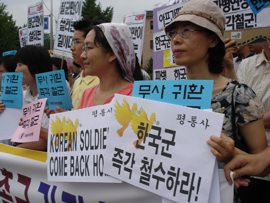 전쟁과 분쟁의 직접당사자도 아닌 민간인 납치는 어떠한 이유로도 용납할 수 없는 또 다른 범죄행위로 규탄받아 마땅하다. 한국군 철군을 위해 노력해 온 우리는 이 같은 민간인 납치 행위가 한국군 철군을 위해서도 결코 적절하지 않다는 것을 분명히 밝히며 납치된 한국인들의 즉각적인 석방을 요구한다.