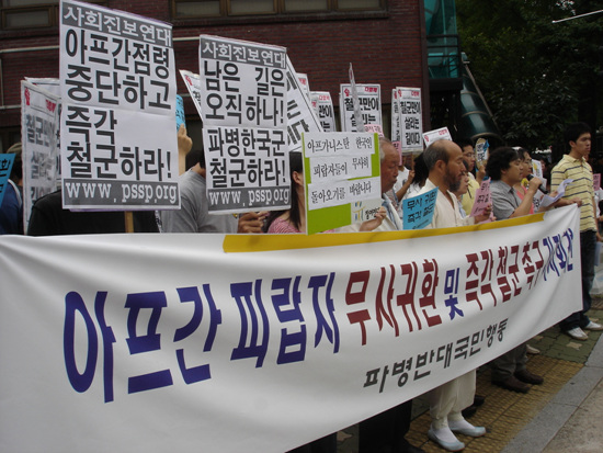 정영섭 사회진보연대 활동가는 "9.11 이후 미국은 테러와의 전쟁이라는 명분으로 아프가니스탄에서는 7년째, 이라크에서 4년째 점령하며, 고통이 민중에게 전가되고 있다"고 주장하며 "지배자들에게는 패권과 이익을 안겨주겠지만, 수많은 생명들이 점령과 파병으로 희생당하고 있다"고 강조했다.